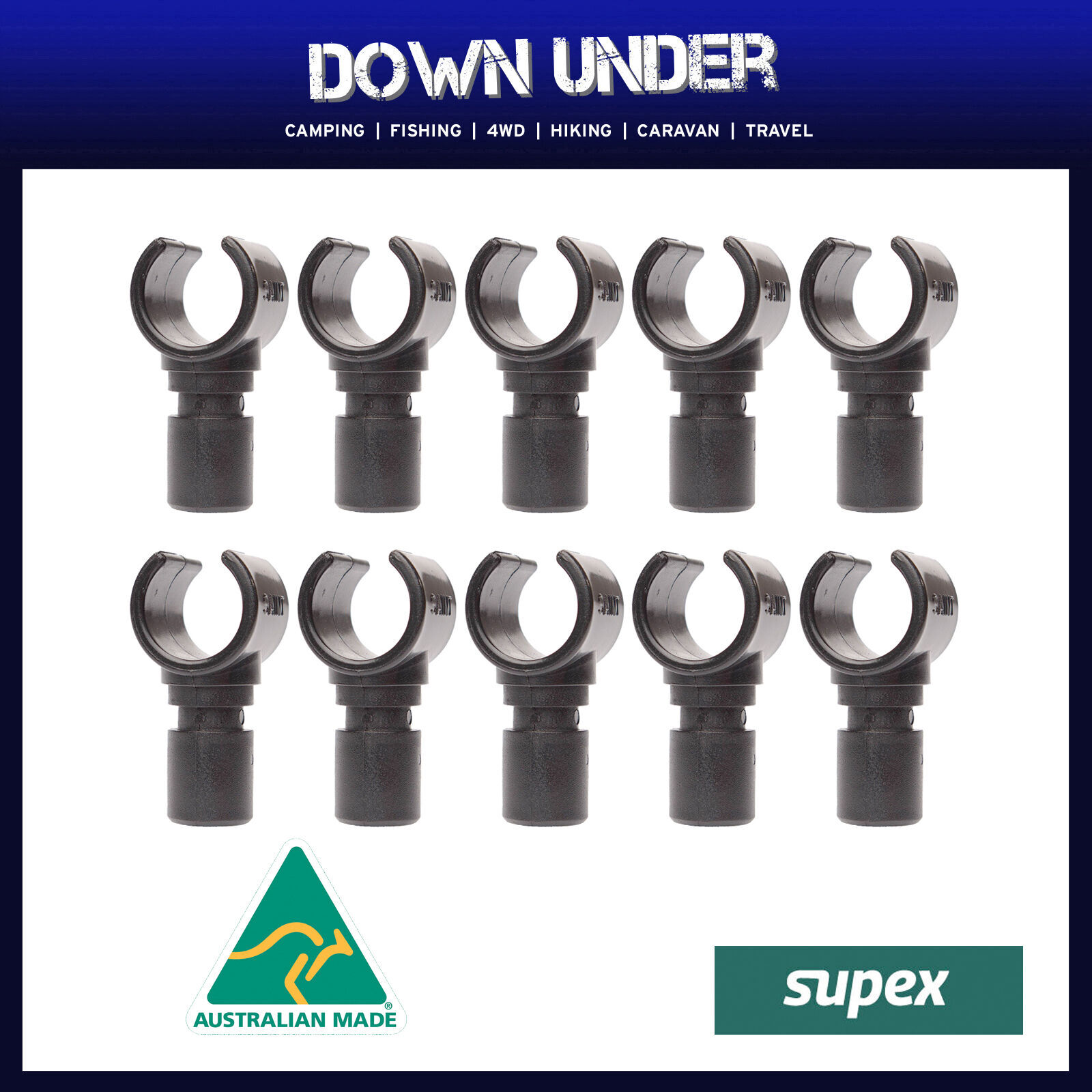 Black ABS plastic C-Clip to snap over poles when mounting.