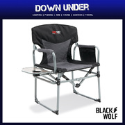For trips to the campground or even the backyard, the BlackWolf Compact Directors Chair features a pop down side table, a durable polyester fabric seat, a sturdy steel frame and a compact fold down for easy pack away. Need something to last? This chair is for you.