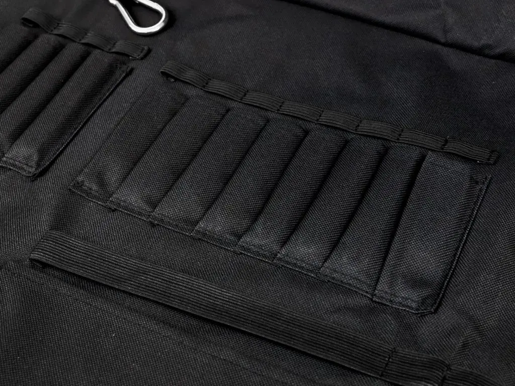 - Features loops with carabiners so the opened roll and utensils can be hung for quick and easy access.
