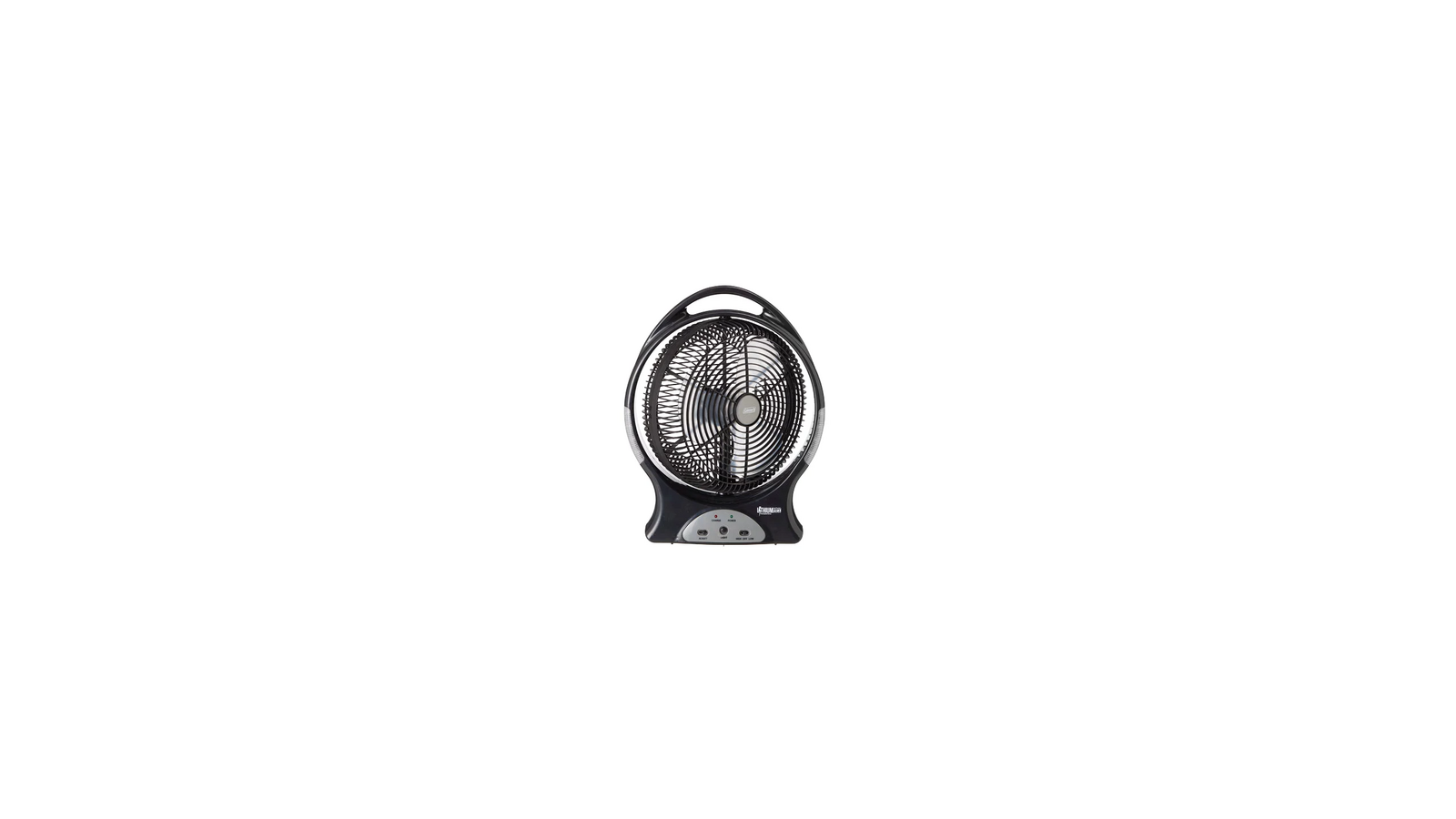Rechargeable Lithium ion battery for better power efficiency and durability. 240V and 12V charging adapters included. Compact size and wireless operation. Front cover rotates to direct airflow. Adjustable oscillating head swings side to side. Operates quietly directly from 112V or 240V power. Battery indicator light turns green when fully charged. led lights operate independently of fan.