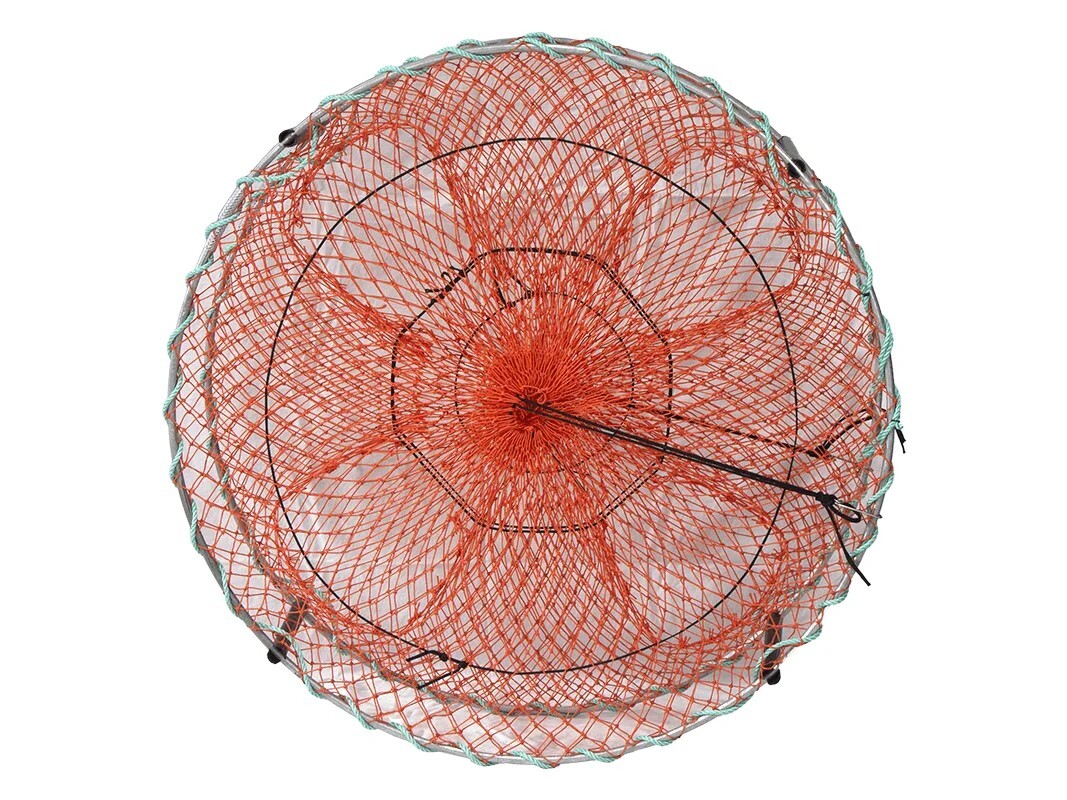 Sporting 5 double notched 380mm poly legs the 4 extra wide and deep funnels allow the crabs to feel at ease when entering the pot and the extra height of the pot enables them to hold the crab extremely well. Available in either Black or Orange 30 Ply 55mm mesh with Sewn in extra large bait bags to hold your bait.