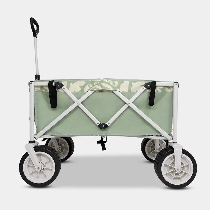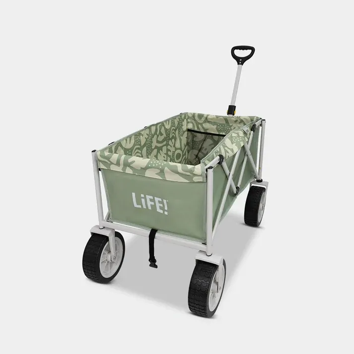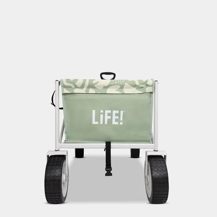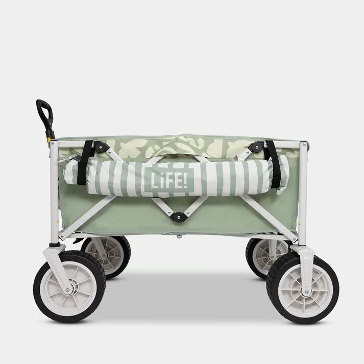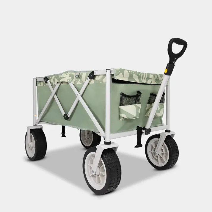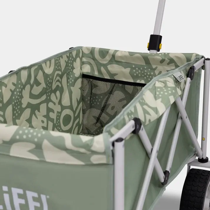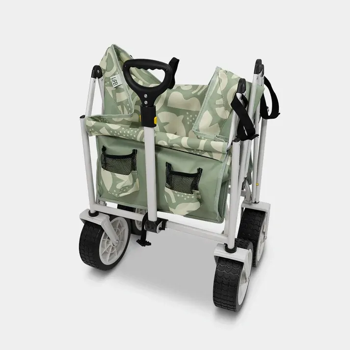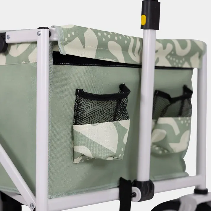 Meet the Eden Delmar Beach Cart, a premium sage cart with chic cream accents, inspired by Matisse’s abstract style and built for effortless summer adventures. Glide smoothly over sand with its large wheels, and easily steer with the retractable pull and adjustable push handles. Pack all your essentials in the roomy water-resistant basket and rear storage pocket, while two built-in drink holders keep refreshments handy. An internal pouch secures your valuables, and the heavy-duty steel frame, weighing only 11kg, holds impressive loads with ease. Foldable and easy to store, it’s the perfect companion for beach days, picnics, and more!