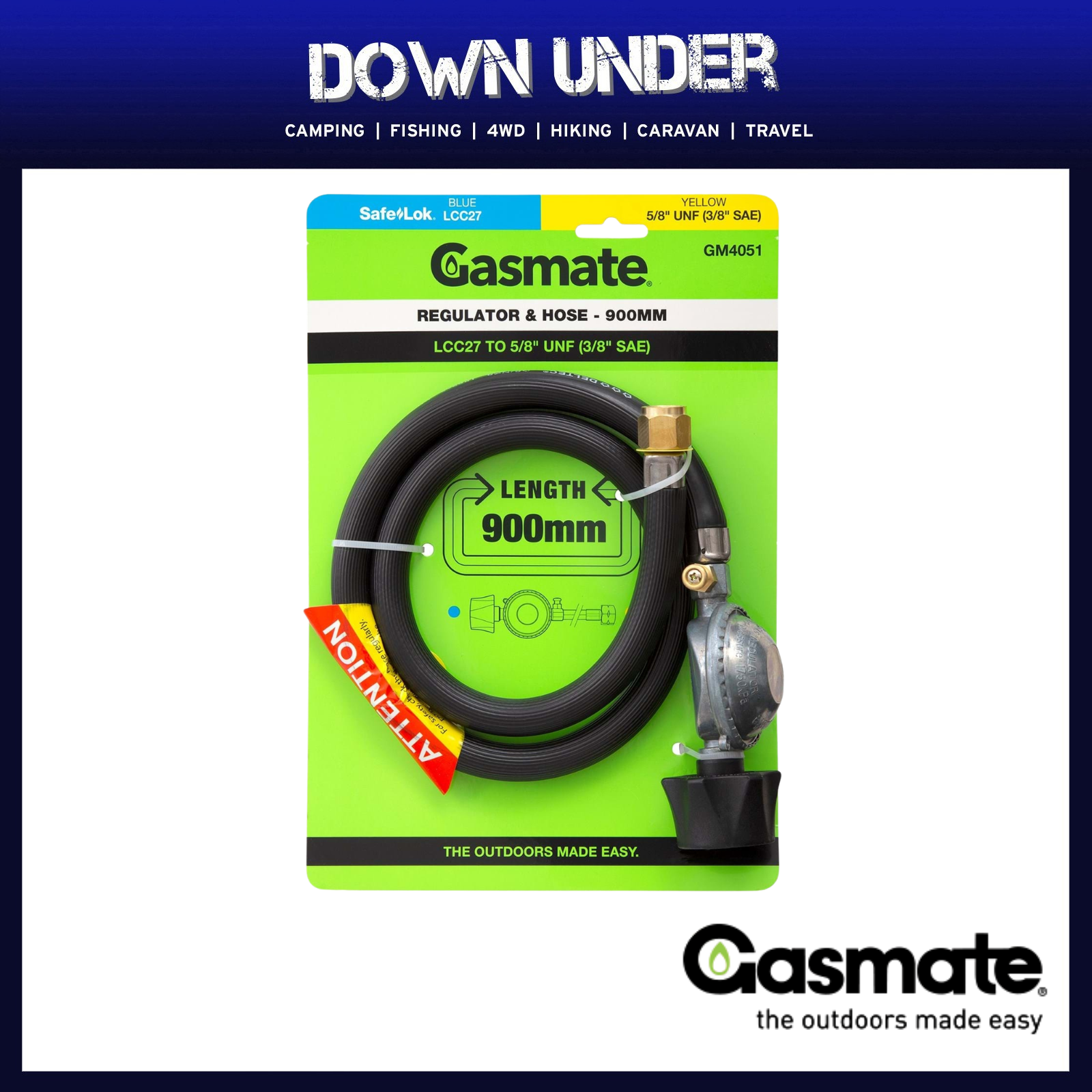 Gasmate is committed to enhancing your BBQing and camping experiences with added convenience and safety. We have a range of comprehensive gas and camping adaptors for your needs. The GM4051 900mm Regulator & Hose will suit LCC27 gas cylinders and a BBQ inlet manifold with a 5/8”-18 UNF (3/8” SAE) thread.