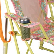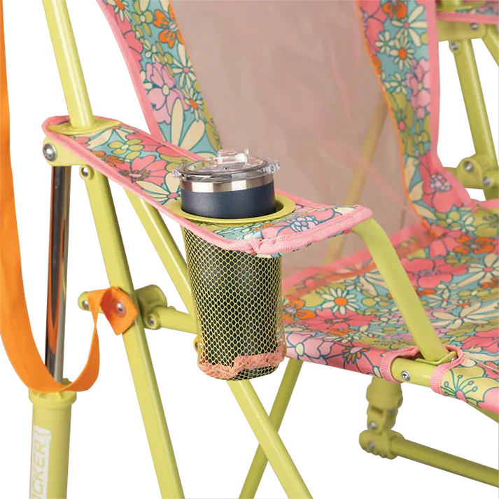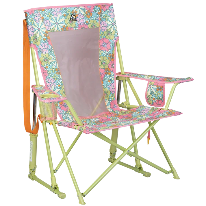 The Comfort Pro Rocker is a foldable camping chair with a rocking function, designed for both adventure and relaxation. It comes with an integrated carrying strap for easy transport and features patented Spring-Action Rocker Technology, providing a relaxing rocking experience on various surfaces. The chair includes an airy mesh backrest, a convenient cell phone pocket, and a cup holder. With its foldable design, it is convenient and portable for outdoor use.