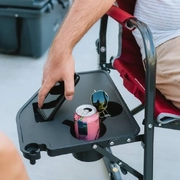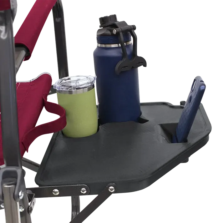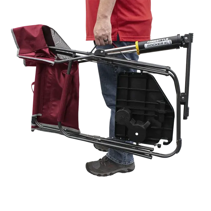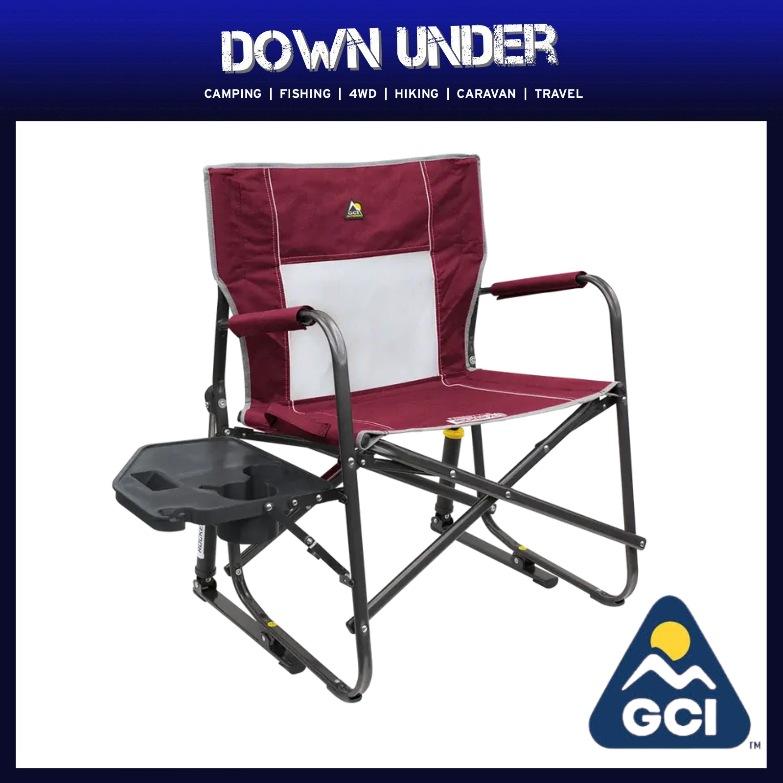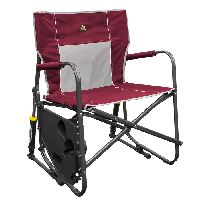 The GCI Outdoor Freestyle Rocker XL is a highly versatile portable folding rocking chair designed for outdoor enthusiasts. Its sturdy powder-coated steel frame can support up to 181 kilograms and features padded armrests, a mesh backrest, and a fold-out side table for added convenience. The chair incorporates patented Spring Action Rocking Technology, providing a smooth rocking motion on various outdoor surfaces. With EAZY-FOLD technology, it offers easy setup and compact storage, and equipped with a carry handle, this chair is an ideal choice for camping, lawn activities, or sporting events.