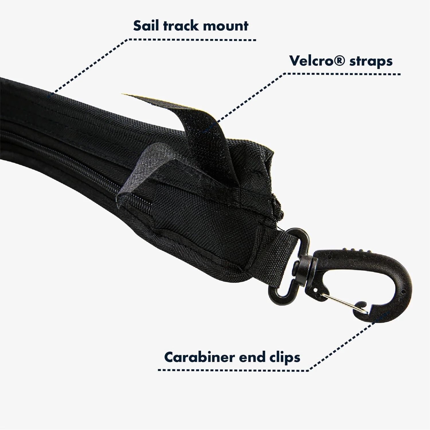 - Easy to mount: Carabiner end clips, Velcro® attachment straps and handy inbuilt sail track mount