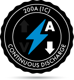 * Note on discharge current: if you connect multiple batteries in parallel, the maximum discharge current is multiplied by the number of batteries in the array. For example, if you connect two of these batteries in parallel you can discharge at up to 400A.