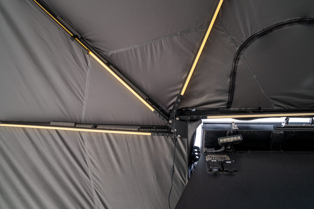 The 270° awning features inbuilt lighting, including six 1300mm tri-coloured LED light strips that deliver over 9000 lumens of brightness. Each light strip is independently switchable, allowing you to customize the lighting to suit your needs, whether you’re setting up camp, cooking, or simply relaxing under the awning. The tri-colour functionality includes an orange light setting, which is specifically designed to help keep bugs away, ensuring a more comfortable and enjoyable outdoor experience.