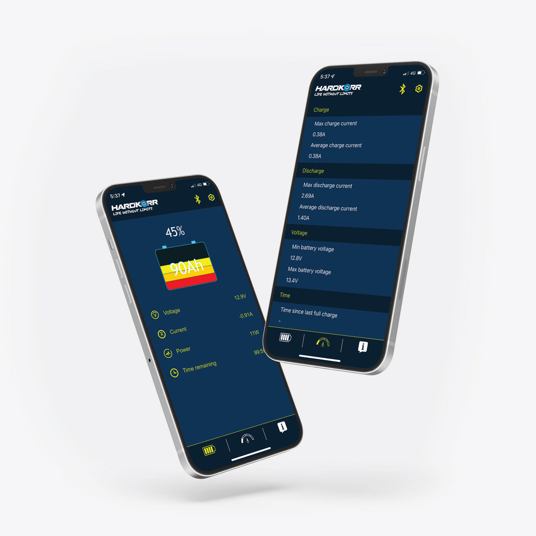 Using our free Bluetooth app, you can easily access all of the information from the battery monitor screen via your smartphone. You can also change settings from the app and wirelessly synchronise them with the monitor.