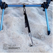 Strong, lightweight DAC aluminum stake is simply pushed into dirt, sand, or turf for secure anchoring of your chair.