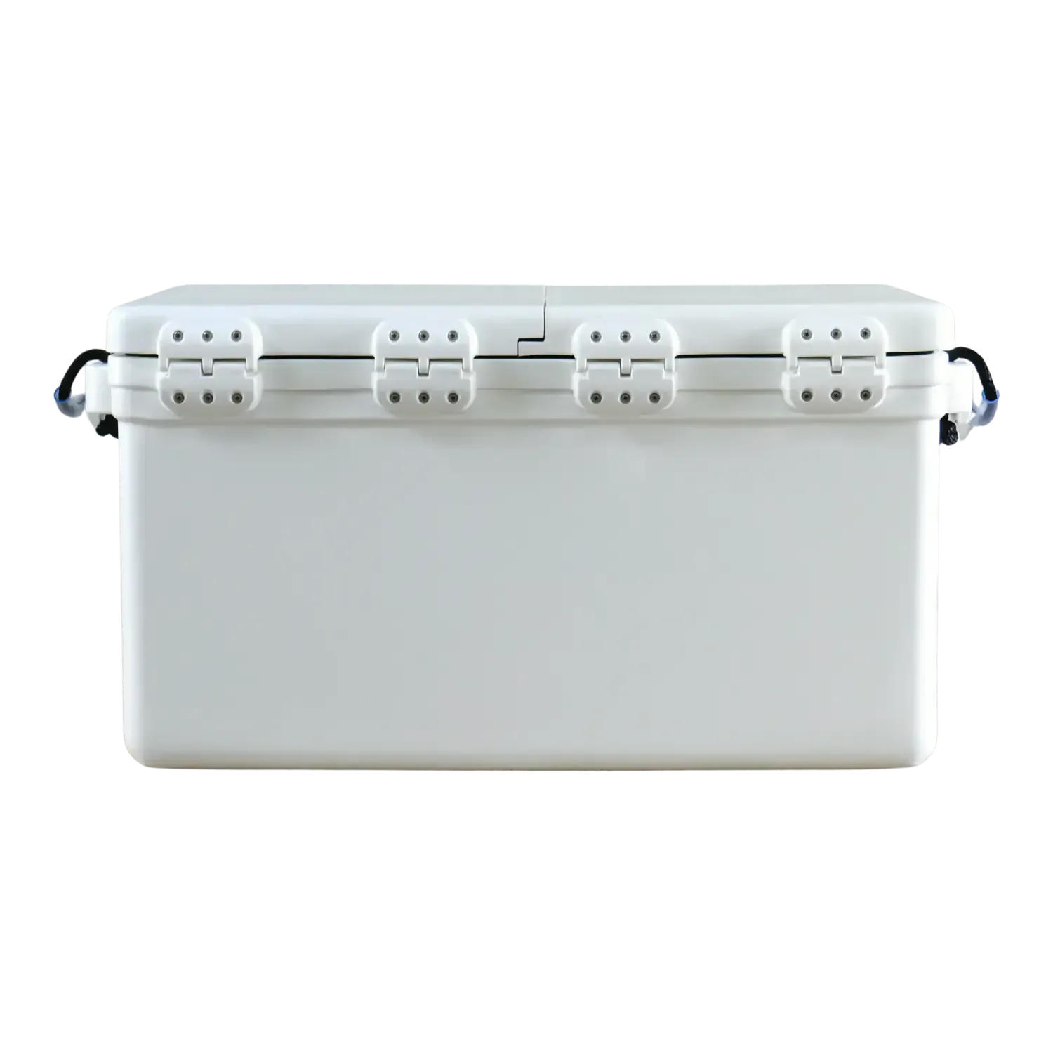 The wall thickness ranges from 80mm thick in the lid where it needs the most insulation. To 40mm to 45mm thick in the base and sides. This gives our coolers great thermal insulation without being overly heavy.