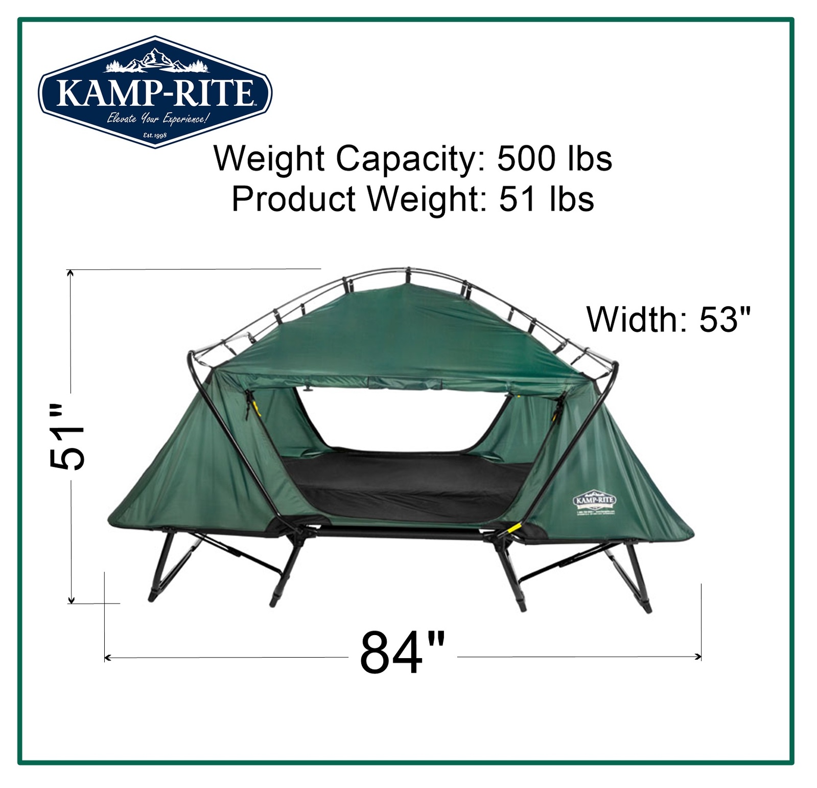 Kamp-Rite®’s Double Tent Cot is the two-person version in the line of Tent Cot products. The sturdy aluminum frame keeps you 11” above the ground to provide comfort and protection from insects, rocks and dampness.