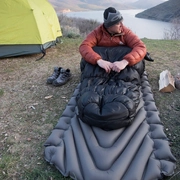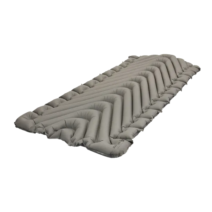 - Generous Width: Accommodates even the broadest shoulders, providing ample space for a comfortable night's sleep. - V-Shaped Design with Body Mapping Technology: Patented design and advanced body mapping technology ensure optimal support and comfort, catering to various sleeping positions – side, stomach, or back. - Integrated Side Rails: Enhances sleep quality by centring you on the mat and minimising air movement during tossing and turning for a secure and undisturbed rest. - Deep Weld Patterning: Creates expansion zones, allowing your sleeping bag to loft fully beneath you, improving thermal performance for a cozy night in any environment. - Quick Inflation Valve: Easy-to-use valve allows rapid inflation in approximately 20-30 breaths, streamlining the setup process for a hassle-free camping experience. - Durable 75D Polyester Construction: Ensures long-lasting use, providing a reliable and resilient sleeping pad for your outdoor adventures.