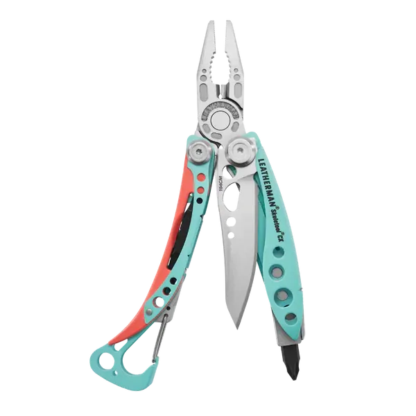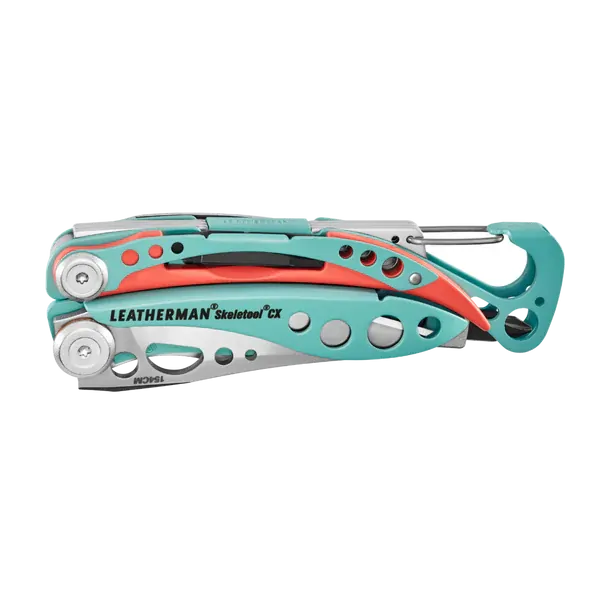 The sleek new Leatherman Skeletool CX gets you back to basics... very cool basics. The Skeletool CX has only the most necessary of multi-tool features, because sometimes that's all you need. With a 154CM stainless steel blade, pliers, bit driver, pocket clip and carabiner/bottle opener, you're set. Lightweight, low volume, perfect size. The Skeletool CX: who says more is better?