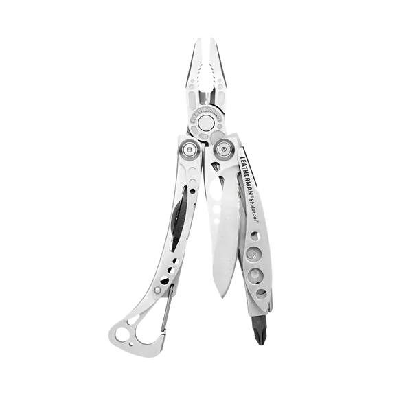 At a mere 142 grams, the Leatherman Skeletool has a stainless steel combo blade, pliers, bit driver, removable pocket clip and carabiner/bottle opener. The Skeletool is just what you need in one good lookin' package.