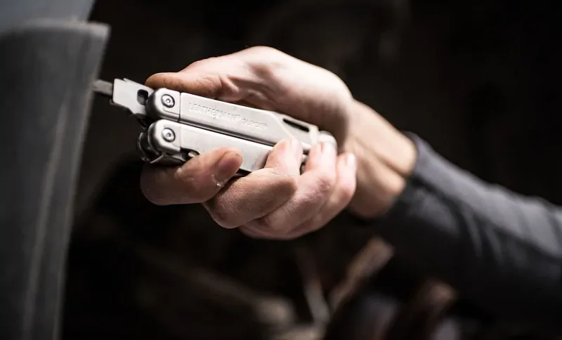 The Leatherman Surge is one of our two largest multi-tools; a real powerhouse, built with our largest pliers, longest multi-tool blades and easy-to-use locks. A unique blade exchanger, replaceable premium wire cutters and four outside-opening blades give you quick access to the tools you use most. The Surge was built for tough jobs and the hands that do them.