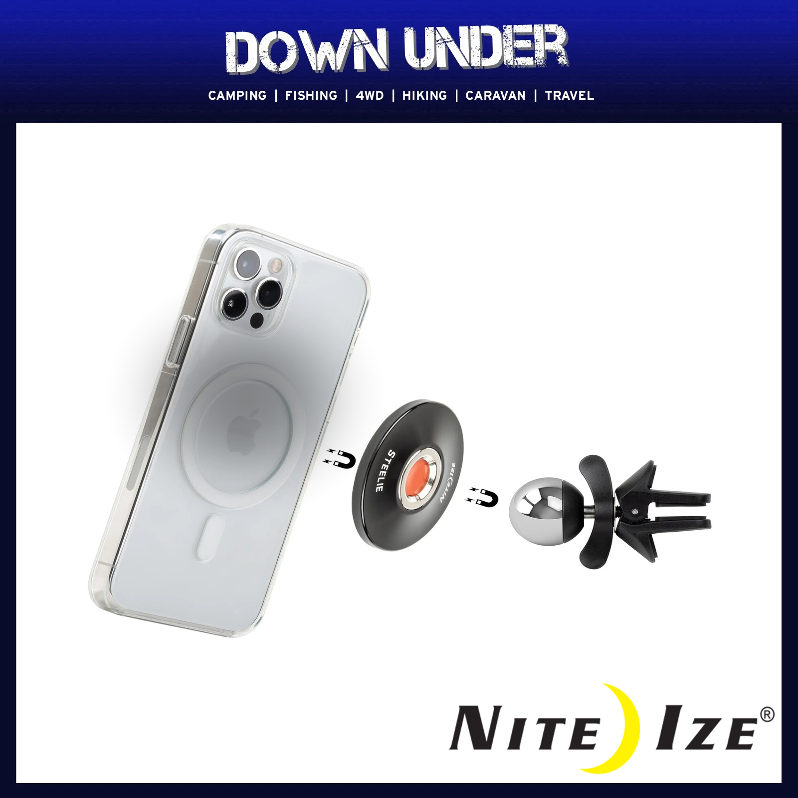 And since no detail is overlooked at Nite Ize, we’ve included an optional Metal Ring that sticks to the back of your Apple MagSafe charger, allowing your phone to stay magnetically mounted to Steelie while charging. With this complete kit, your phone can stay securely in view through morning commutes, road trips, and busy errands.