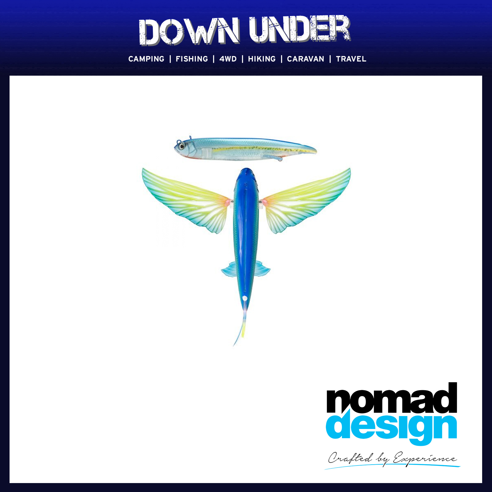 The unique folding wing design allows the wings to fold back when cast for extra distance or when fighting big tuna and marlin for reduced drag through the water. The wings, tail fin and side fins can all be changed or replaced with Nomad Design WING SETS to create your own ultimate flying fish colour scheme.