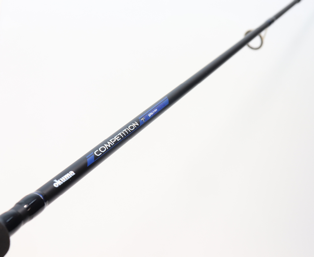 Okuma Competition 8'0" 2 Piece Spin Rod - Heavy Okuma Competition rods feature graphite composite rod blank construction, stainless steel hooded reel seat with Okuma logo, split grip butt design for reduced weight and improved balance. A range of rods that feel and fish well above their price point.COMPETITION SPIN RODS