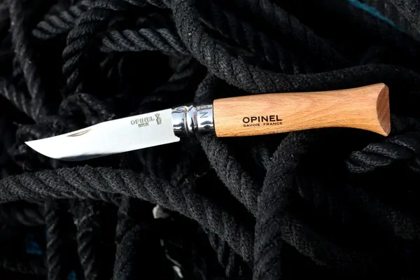 This folding knife features the renowned sharp Opinel blade paired with a comfortable beech wood handle. It is equipped with the Virobloc safety ring for added security. Crafted from Sandvik 12C27 modified stainless steel, the blade is anti-corrosive and requires no special maintenance. With a carbon content of at least 0.40%, it offers an exceptional cutting edge that is easily sharpened.