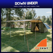 Introducing the Oztent SV-5 Max - our newest innovation. Named “SV" after Shane Viglione our late owner and visionary. This was the last tent design he worked on. Now brought through to fruition, the SV-5 Max features a patent pending angled frame design meaning it has a 3m width at the front of the tent. The peaked front awning also tapers out to a 3.5m width opening the living area right up. The SV-5 Max also comes with a Zip-in Tarp Extension which then tapers out again giving the front a massive 5m width! It also includes all of our most popular features such as 30-second setup, SkyMesh Skylight, peak poles, included fly and a new rain cover for the carry bag.