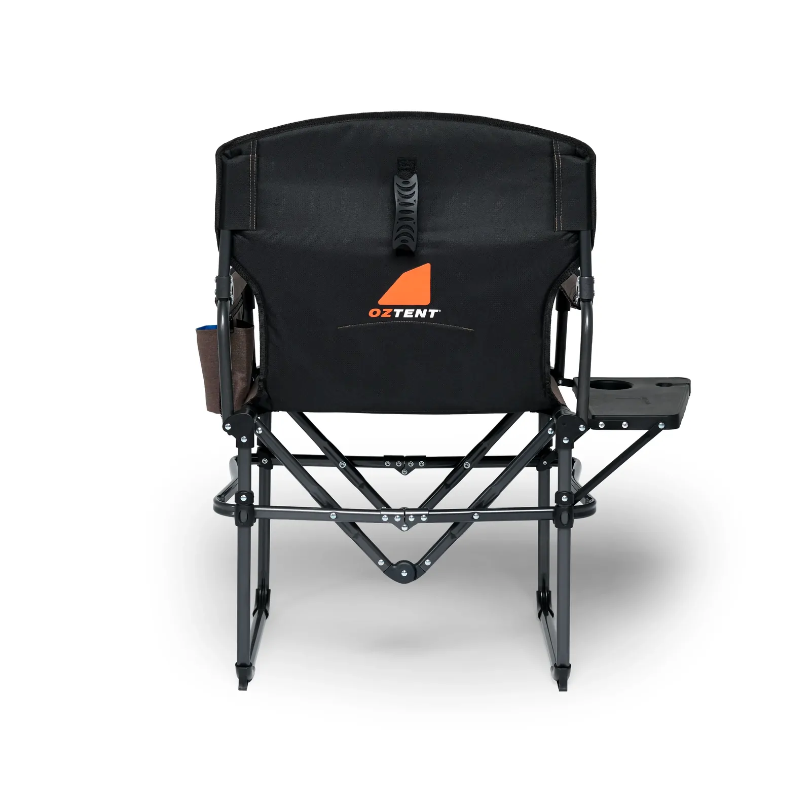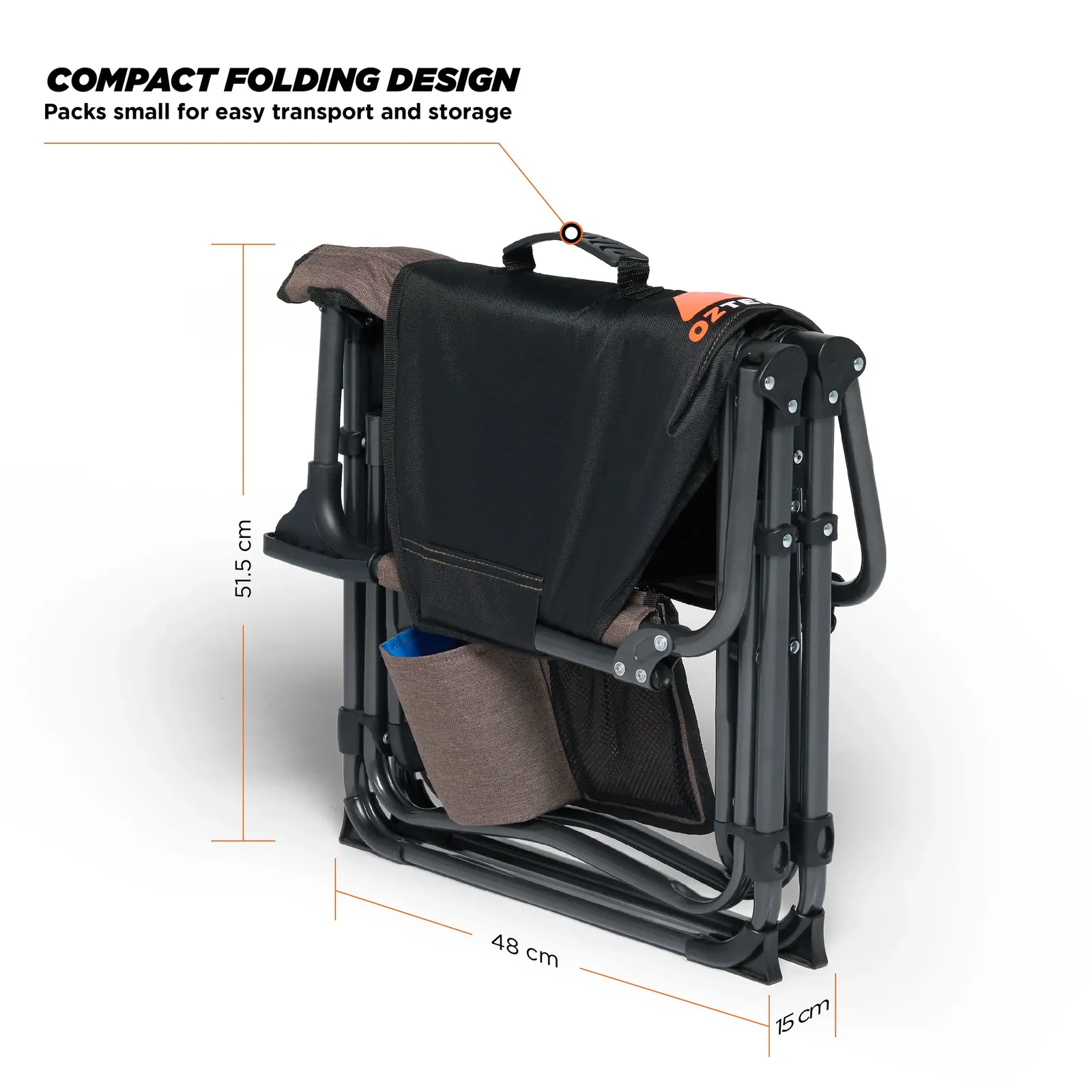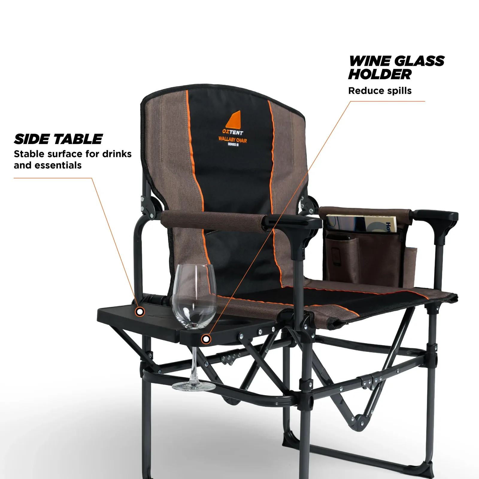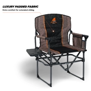 Practical features including a built-in side table, wine glass holder and clever storage for essentials with phone and drink pockets add everyday convenience outdoors. Comfortable, luxury padded fabric provides supportive seating for relaxed meals and downtime at campsites and beyond.