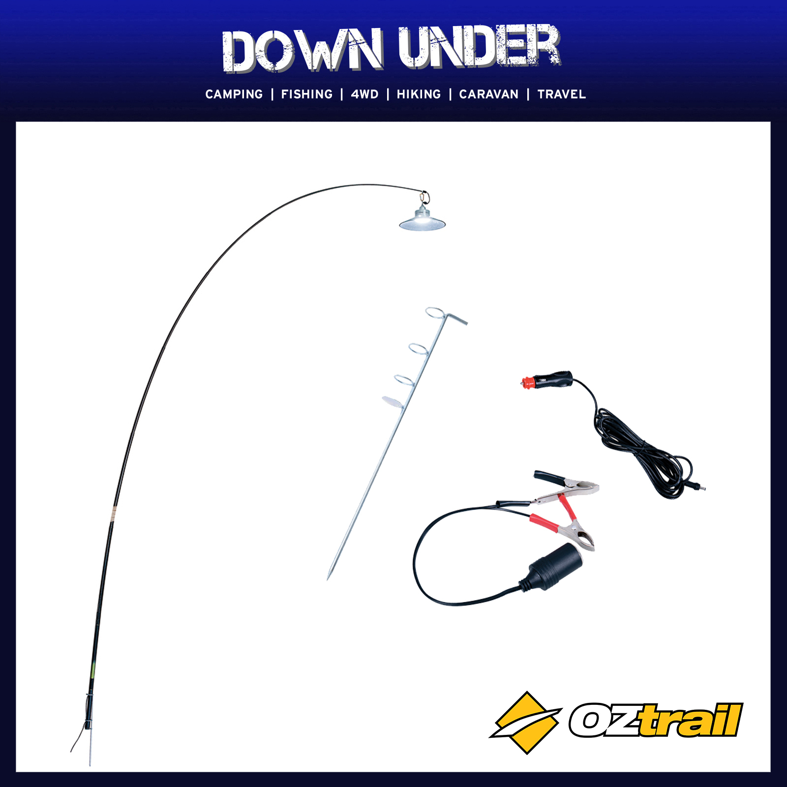 - Approximately four metres tall when fully extended with the fibreglass pole, the fibreglass pole allows the light to shine directly over the campsite