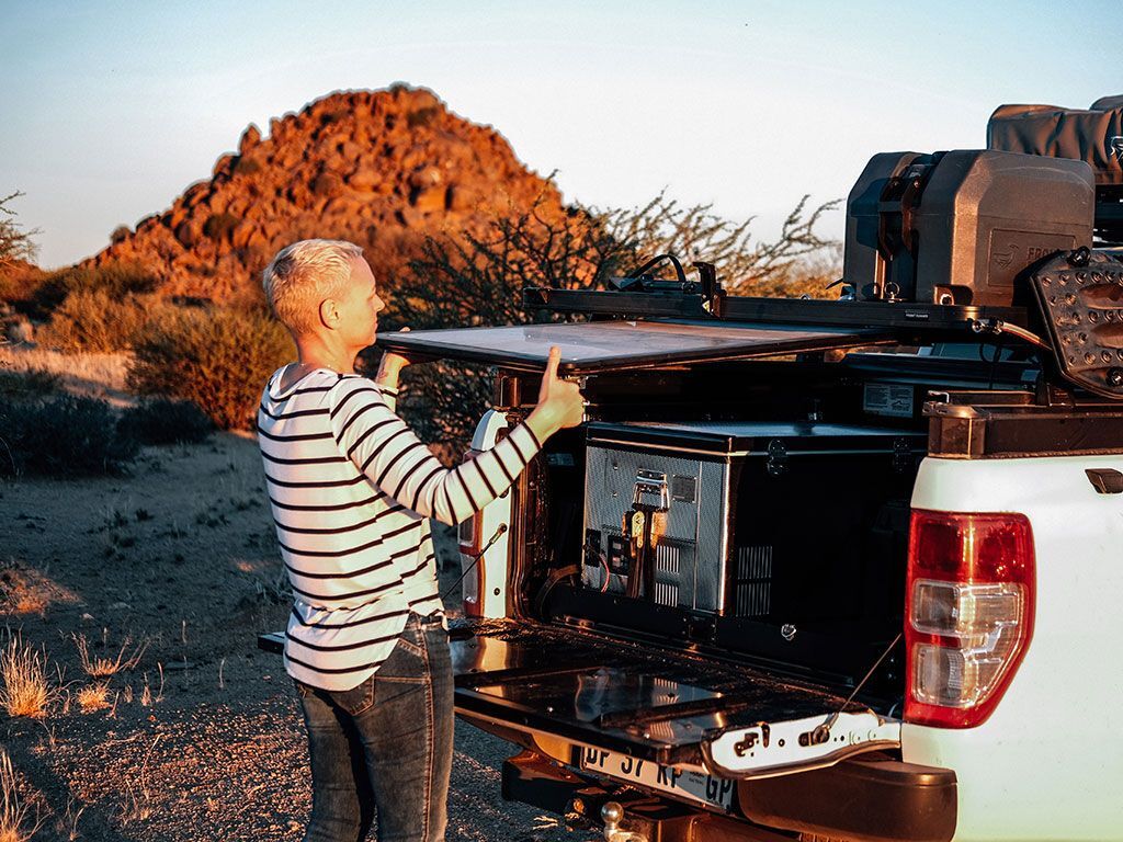 - The brackets can be mounted both parallel and perpendicular to the roof rack's slats giving the option to access to the table from either the side or rear of the vehicle.