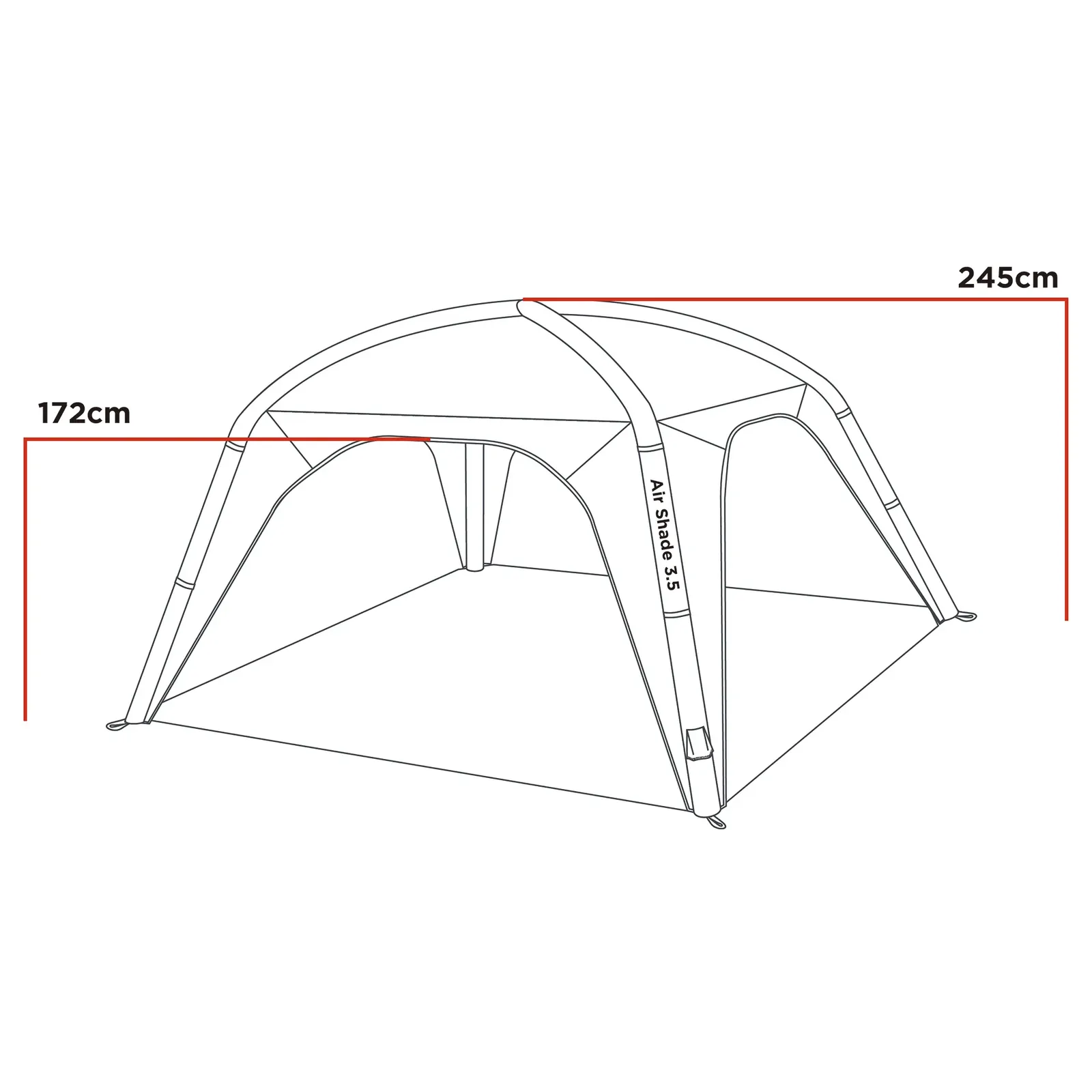 The Quest Air Shade 3.5 is a larger, simplified version of our best-selling Air Gazebo 3.0. Set up from a single inflation point, it’s fast and easy to pitch with ample headroom plus superb stability via guy ropes and with the forgiveness of the inflatable frame. The durable 100% polyester QTex 2000 fabric offers reliable protection from the weather; optional side walls can be added to enclose the gazebo from weather and/or insects.