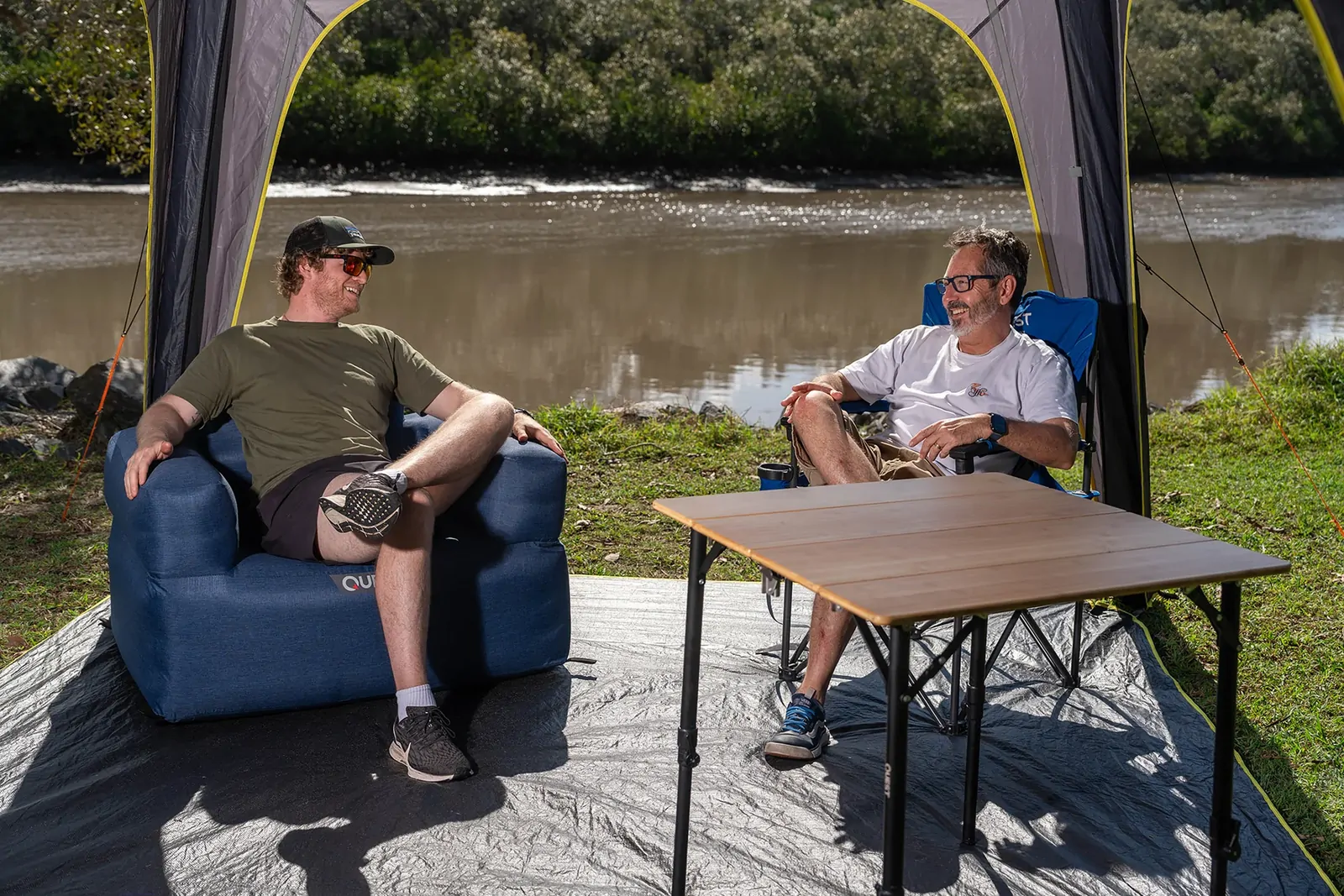 Practical yet sleek and stylish, the Quest Bamboo Table Medium will liven up your camp set-up. The natural bamboo surface is good-looking, food-safe, and environmentally sustainable. It sits atop a sturdy and rust-resistant aluminium frame with a total weight rating of 60kg.