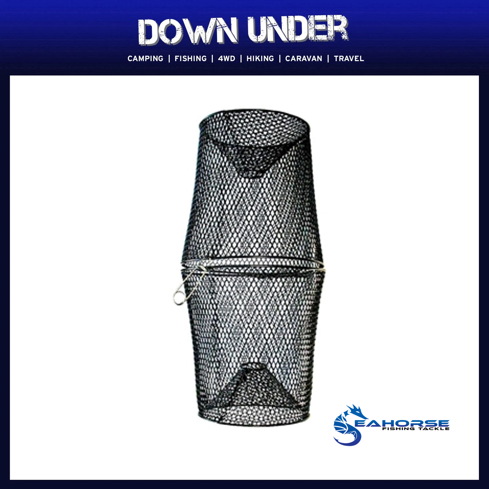 This shrimp pot is a compact 2 piece unit, which clips together for easy storage and transportation.