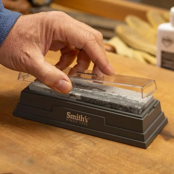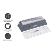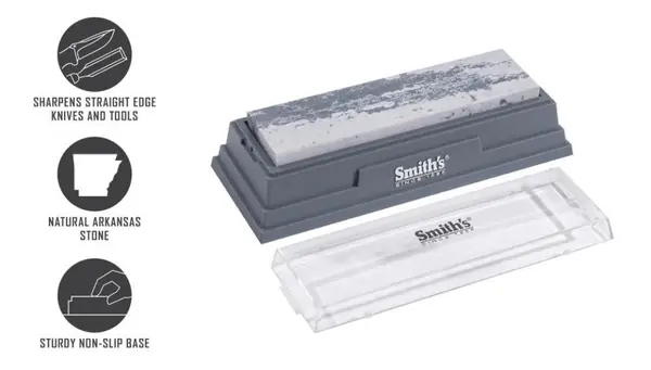 The Medium Arkansas Stone is the best general purpose sharpener of all the natural Arkansas Stones. This 6” Medium Arkansas Stone is mounted on a molded plastic base to make sharpening safe and easy. It is excellent for sharpening pocket knives, hunting and fishing knives, kitchen knives, and tools of all sizes, large or small.