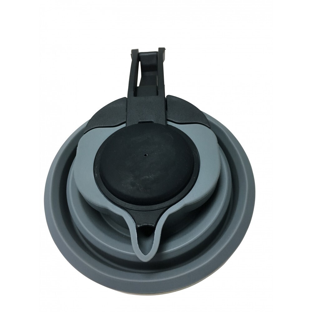 1.2L grey collapsible kettle with stainless steel base and heat proof handle.