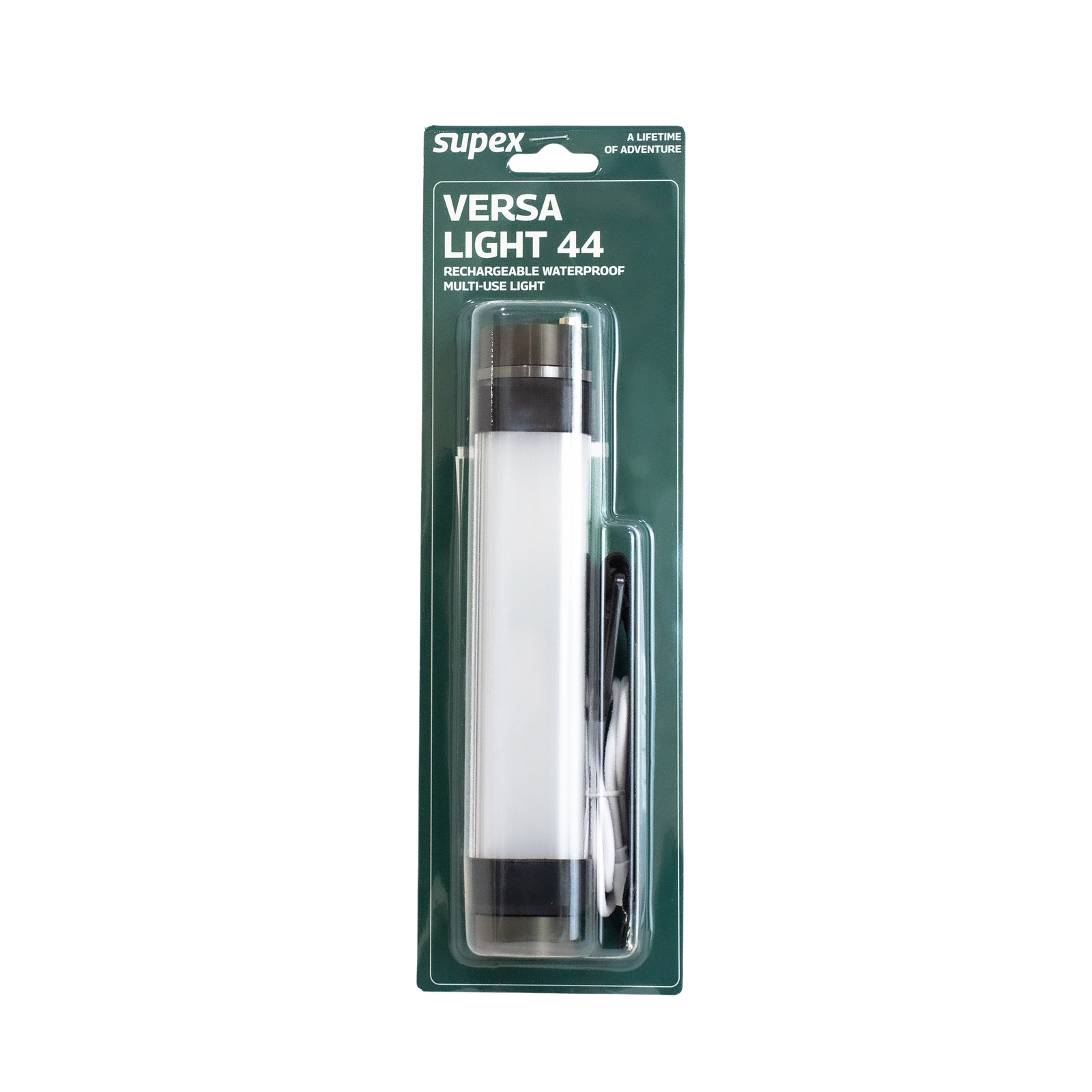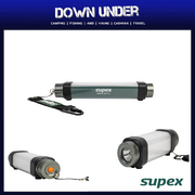 Rechargeable waterproof multi-use light Features five light modes: torch, daylight, bug repellant amber, cool white & flashing SOS Waterproof to IP66 Battery: 4400mAh, USB-C Charging (cord included) Dimensions: 210mm (l) x 42mm (w)