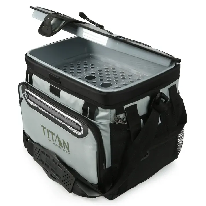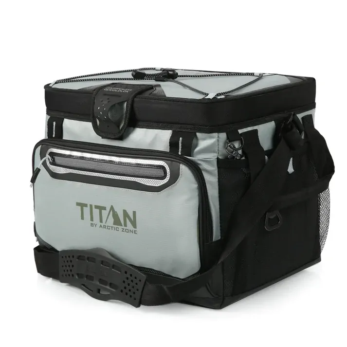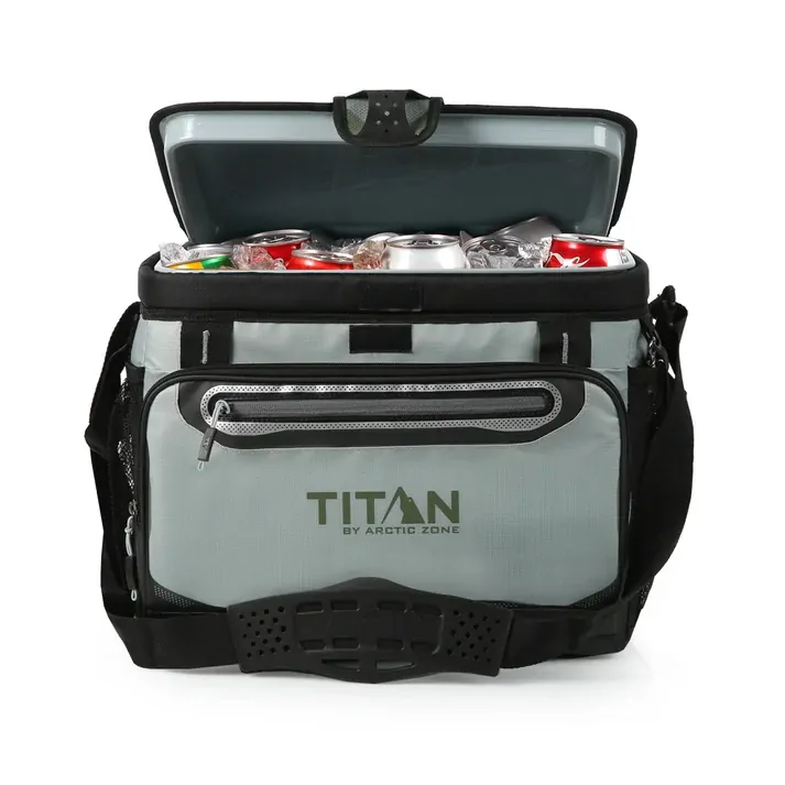 The Titan by Arctic Zone 30 Can Zipperless HardBody® Cooler delivers maximum cooling and convenience with its patented Zipperless™ lid for instant access and Deep Freeze™ insulation to keep contents colder for longer. Featuring a durable HardBody® liner with SmartShelf™ for organised storage, a leak-proof, easy-clean lining, and a Backsaver® shoulder strap for effortless carrying.