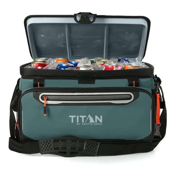 The Titan by Arctic Zone 48 Can Zipperless HardBody® Cooler is built for serious capacity and all-day cooling performance. Featuring a patented Zipperless™ lid for quick access, Deep Freeze™ insulation with a ColdBlock™ base, and a HardBody® liner with SmartShelf™ for organised storage. Durable, leak-proof, and easy to carry with a Backsaver® shoulder strap. Perfect for big adventures and outdoor gatherings.
