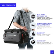 - Adjustable Backsaver shoulder strap with anti-slip shoulder pad helps centre the load weight for easier carrying.
