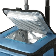 The rugged exterior of the Wheeled Cooler is water and stain-repellent so that it cleans easily. It includes an expandable, insulated front compartment and an easy-access lid that lets you quickly grab contents without opening the entire cooler.